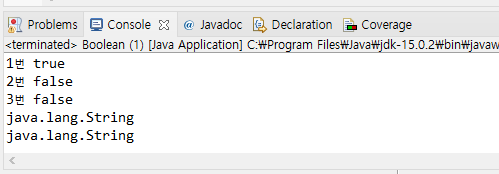 System.out.println("2번 "+ ("one"=="Two"));