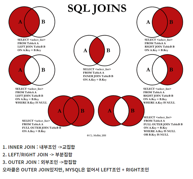 DB JOIN 정리(INNER/LEFT/RIGHT/OUTER)