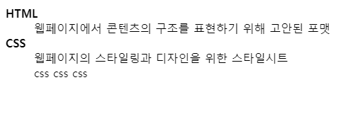<dd>웹페이지에서 콘텐츠의 구조를 표현하기 위해 고안된 포맷</dd>