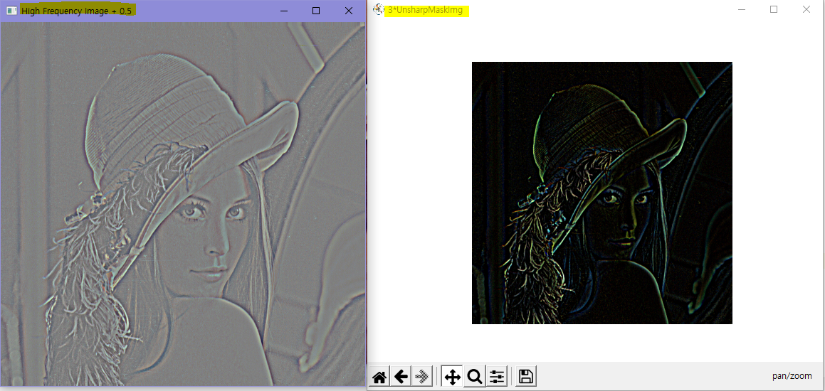 UnsharpMaskImg = img - blur # 고주파 영상