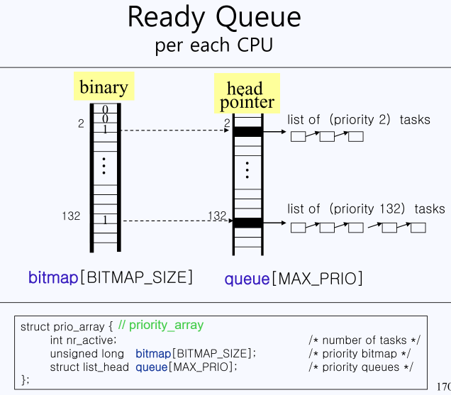 - cpu가 해결해야하는 일들을 queue로 관리, 이 때 우선순위별로 큐를 나누고
