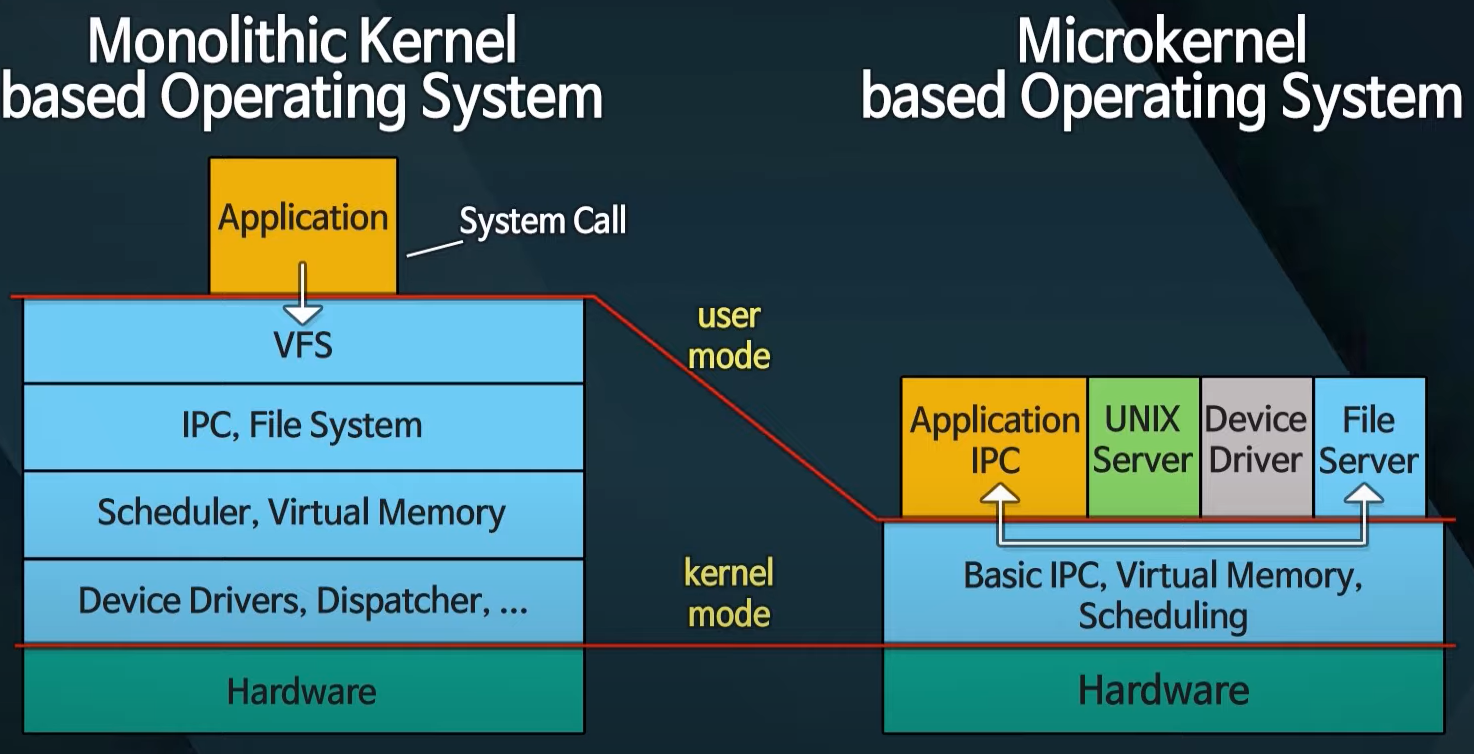 마이크로 커널 : 필요할때만 사용, 메모리 절약