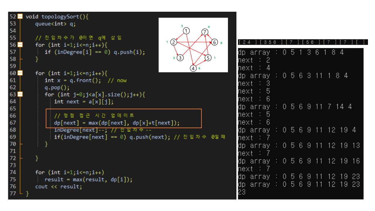 if(inDegree[next] == 0) q.push(next); // 진입차수 0일때
