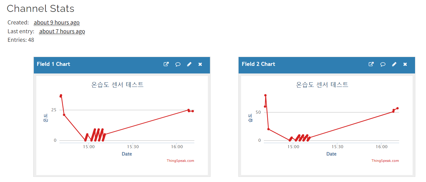 오늘 한 실습은 온습도 측정 센서를 이용해 thinkspeak 웹을 사용. mathworks 계정이 있다면 사용 가능.