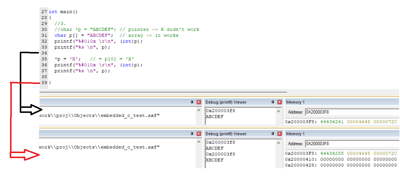 char *p = "ABCDEF"; pointer -> X didn't work