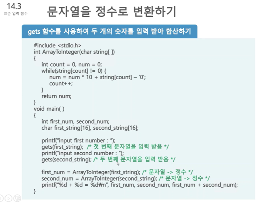- gets 함수로 입력받은 것들은 문자열로 입력받기 때문에 정수형을 원할때는, 따로 변환을 해야 한다.
