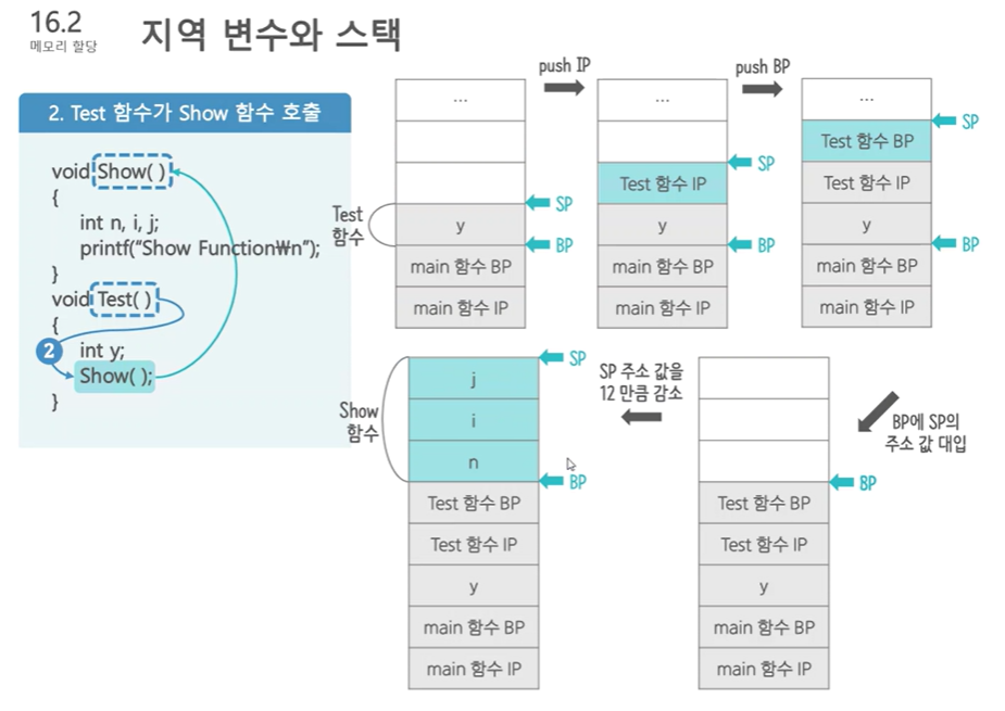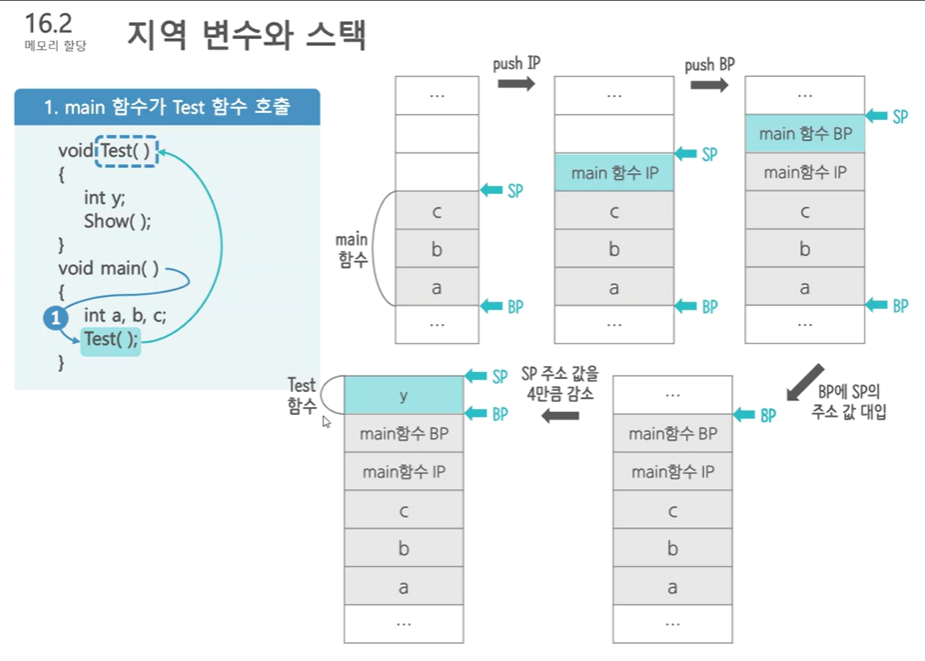 - 지역 변수를 사용하려면 그 변수의 현재 주소를 알아야 한다