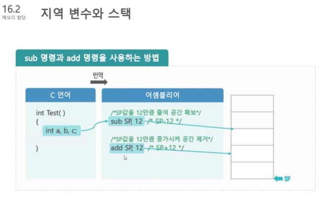 sp를 더하거나 빼서 공간을 확보하거나 반환한다