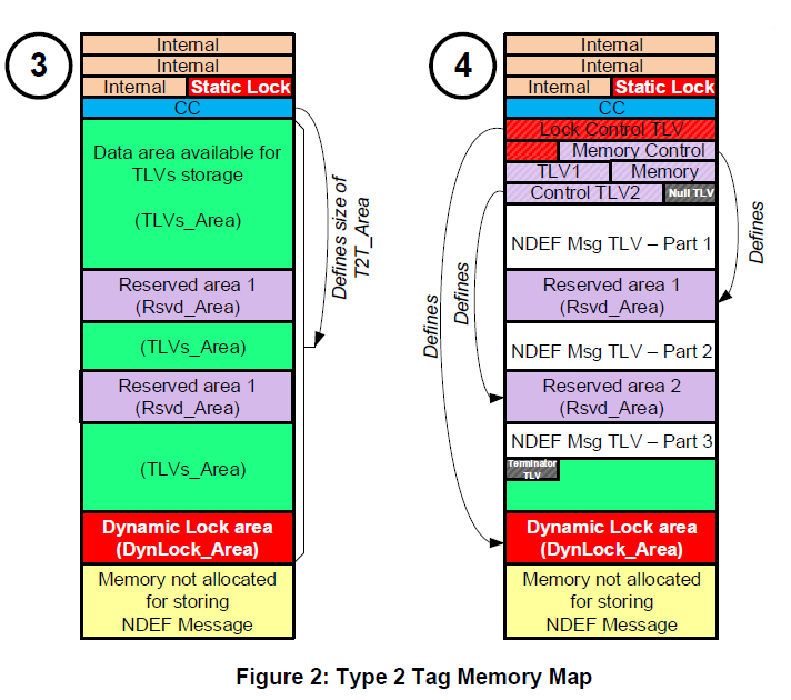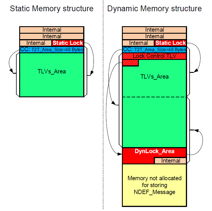 ๋์ ์ ๊ธ ๋นํธ๋ DynLock_Area๊ฐ T2T_Area ๋ค์์ ์ฒซ ๋ฒ์งธ ๋ฐ์ดํธ์์ ์์ํ๊ฑฐ๋ ์ ๊ธ ์ ์ด TLV๋ฅผ ์ฌ์ฉํ์ฌ ์ ์๋๊ธฐ ๋๋ฌธ์ "๋์ "์ด๋ผ๊ณ ํฉ๋๋ค. ์ด๋ ์์น๊ฐ ๊ณ ์ ๋ ์ ์ ์ ๊ธ ๋ฐ์ดํธ์ ๋์กฐ๋ฉ๋๋ค.