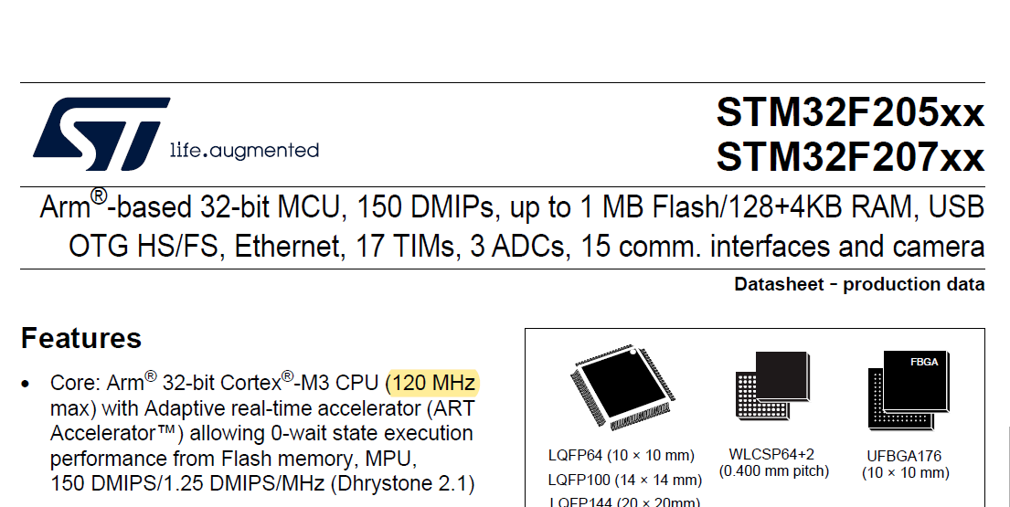 STM32F205RBT6 ๋ฐ์ดํฐ์ํธ๋ฅผ ์ฐธ๊ณ ํ๋ฉด