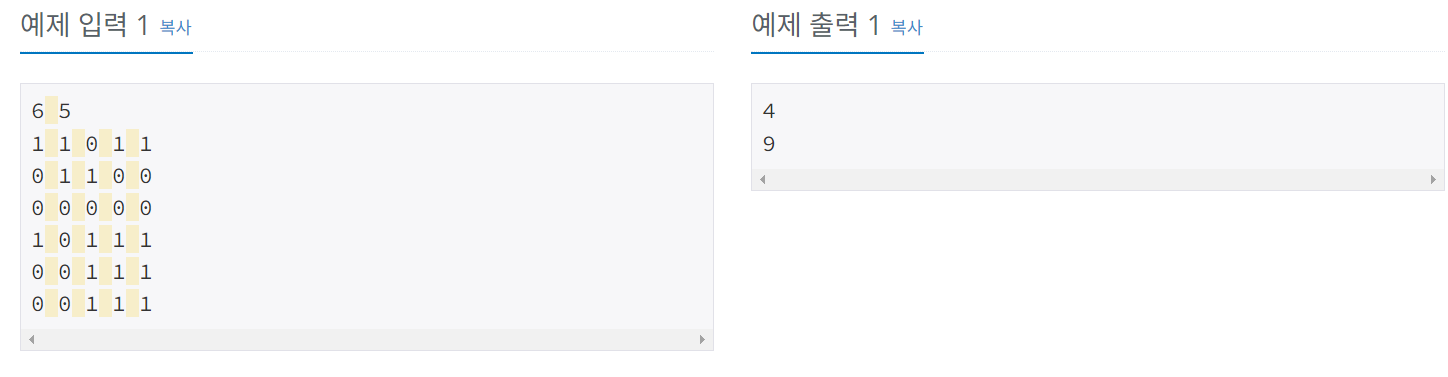 * map의 형태 : [[1, 1, 0, 1, 1], [0, 1, 1, 0, 0], [0, 0, 0, 0, 0], [1, 0, 1, 1, 1], [0, 0, 1, 1, 1], [0, 0, 1, 1, 1]]